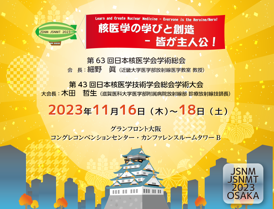我很荣幸担任日本核医学会第 63 届科学年会主席。该展览将于2023年11月16日(星期四)至18日(星期六)在大阪Grand Front大阪国会会议中心B座会议室举行。位于大阪梅田区,交通便利,方便来自全国各地的游客。我们计划采用混合形式,除了网站之外,还将在线提供。第63届日本核医学会科学年会与第43届日本核医学技术学会年会联合召开,由滋贺医科大学放射线科首席放射技术师Tetsuo Kida博士主持医院。要举办,所以我们正在共同努力准备。