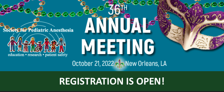 2022年第36届美国小儿麻醉学会年会(SPA)将于2022年10月21日至22日在美国新奥尔良举行,SPA 第 36 届年会将于2022 年 10 月 21 日星期五在新奥尔良 Ernest E. Morial 会议中心举行。星期五的晚宴以及大部分 SPA 部门、委员会和 SIG 会议将在新威斯汀酒店举行奥尔良。